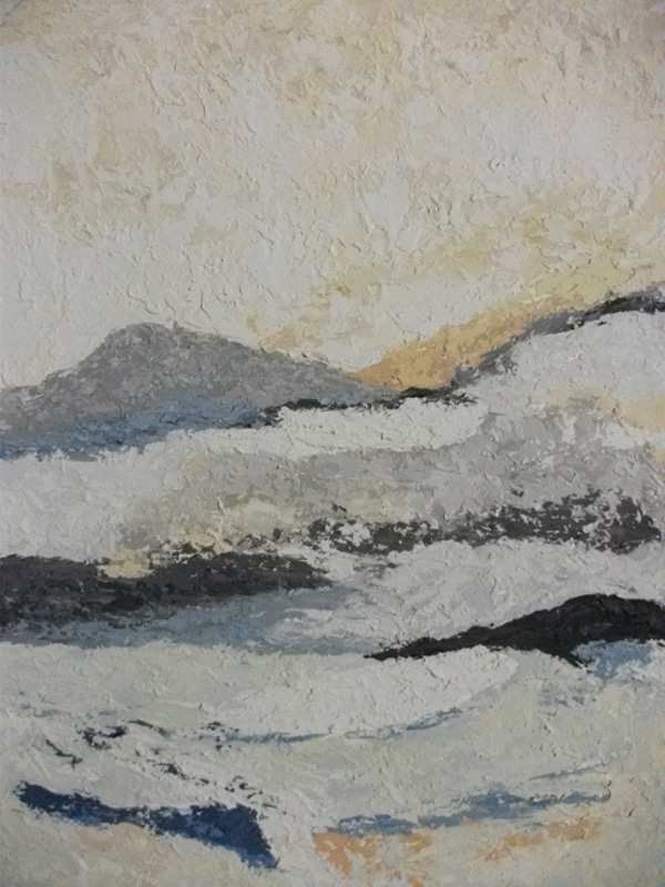 Amo il colore di frontiera” è il verso di una poesia che mi ha particolarmente colpito del pittore Ivano Gonzo. E veramente questo artista veneto è giunto ad una meta “alta” nella ricerca in pittura, dell’assoluto. Nei suoi dipinti le campiture sono stesure vibranti di luce che contengono dei segni e delle presenze che ci inducono ad interrogarci. I nostri occhi, i nostri cuori, così assaliti nel quotidiano da immagini a volte cruente trovano, osservando le opere di Gonzo, uno spazio di puro, benefico silenzio.